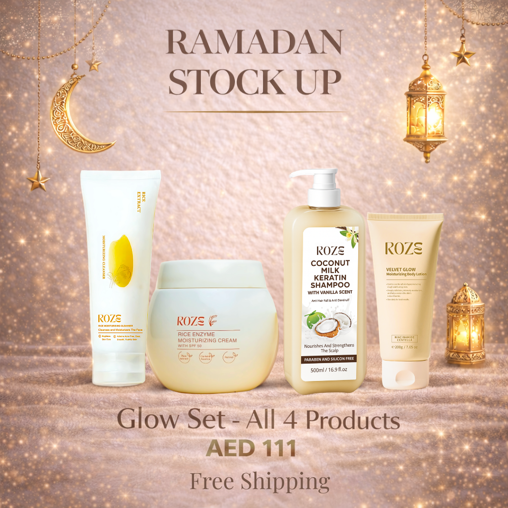 Roze Glow Pack – Cleanser | Moisturizer | Shampoo | Body Lotion