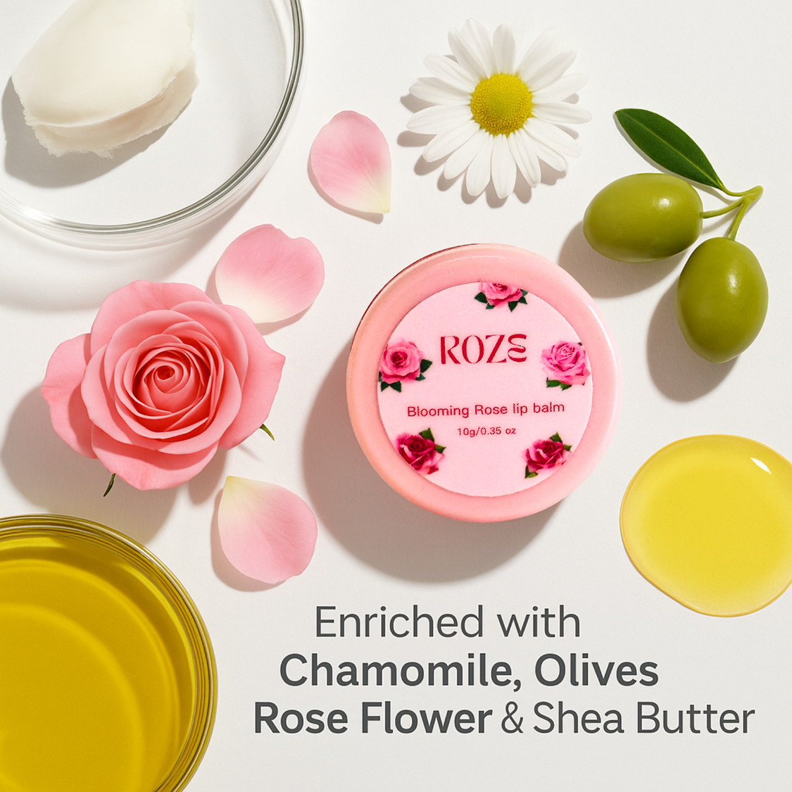 Roze Blooming Rose Lip Balm is more than just a moisturizer — it’s a lip-brightening treatment that naturally enhances your lips’ color while repairing and protecting them. Perfect for daily wear, outdoor protection, or bedtime care, it’s your go-to for soft, hydrated, and naturally glowing lips.